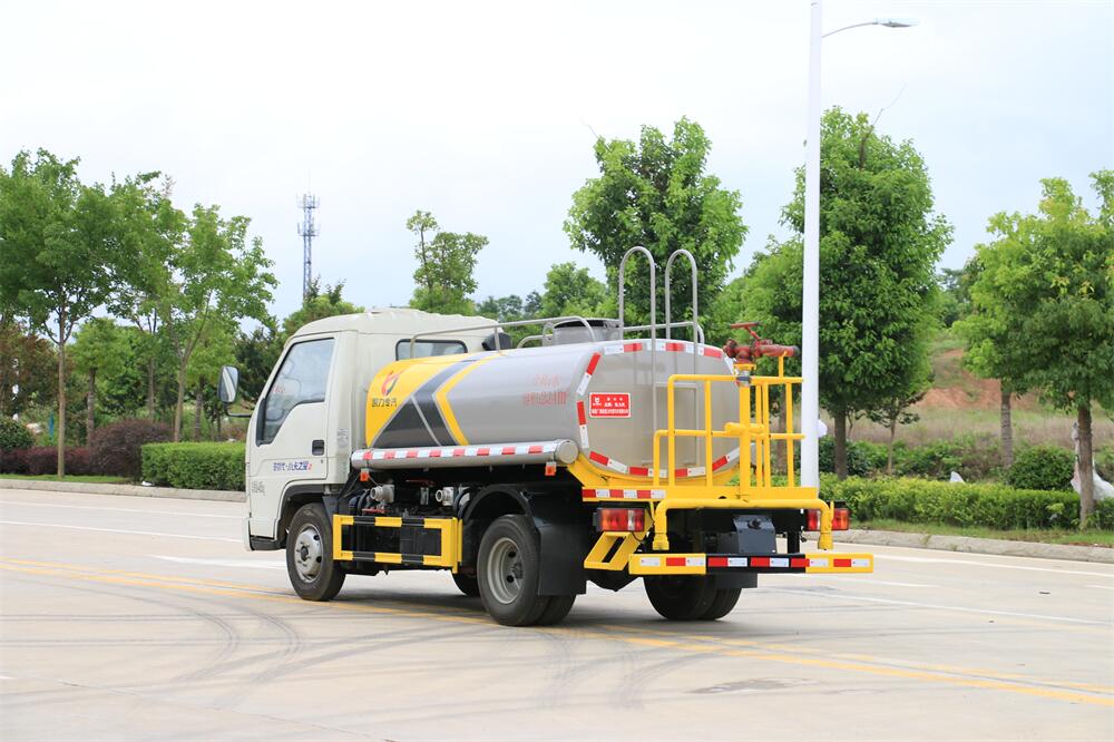 灑水車前裝有鴨形噴嘴或圓頭沖嘴,后面裝有圓柱開灑水噴嘴或蓮蓬頭噴嘴,后部有一工作平臺,裝配有水炮。后部還可裝8個噴嘴(選裝)。