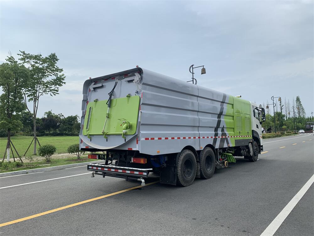 洗掃潔凈度高,該車型齊全的功能解決不同路面環境的作業,一次作業洗掃效率達98%以上,前沖功能、洗掃功能、路沿清洗功能、后噴霧功能、低壓沖洗功能以及采用的吸盤+左右側噴桿結構,路面、溝縫、彎道處、路沿上等處的灰塵、垃圾均能處理干凈,確保環境干凈、整潔。