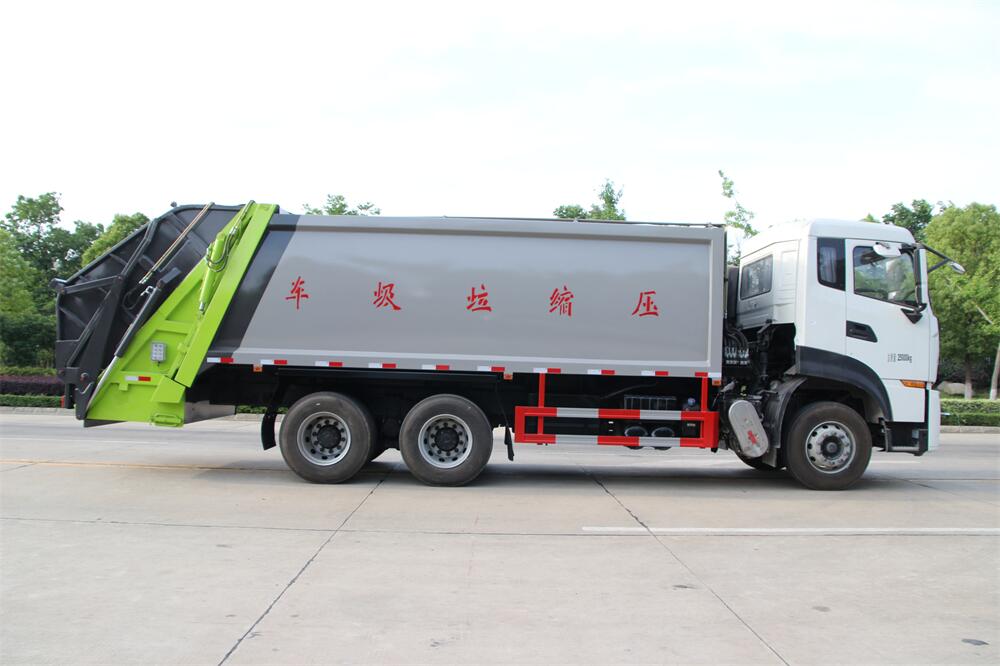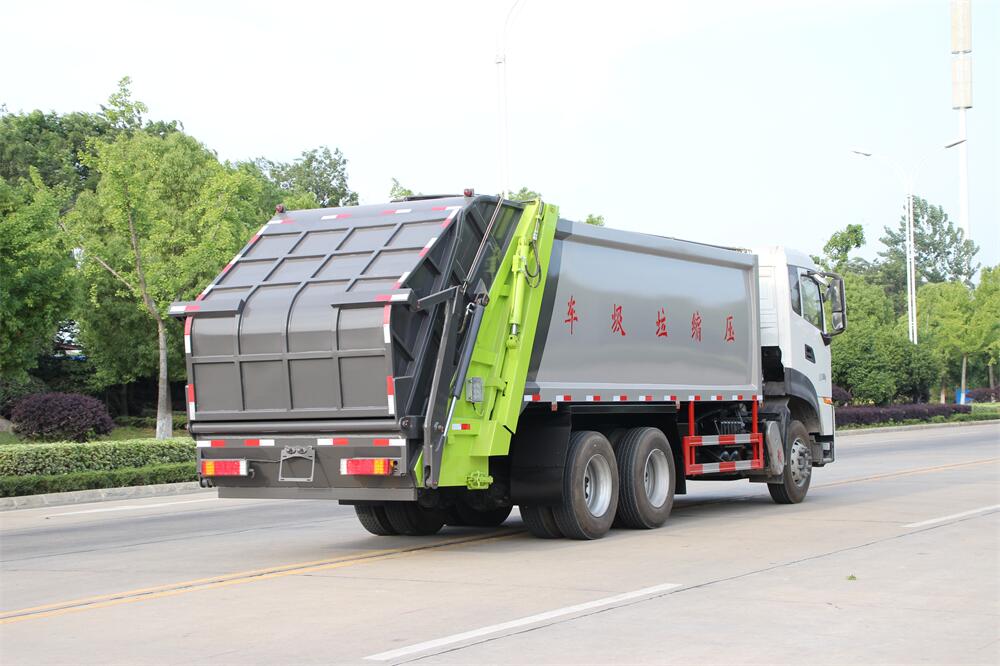 上裝配置:垃圾箱容積:18,20方選擇,新款平面弧形廂體,廂體材料為武鋼優(yōu)質(zhì)碳鋼,PLC一鍵操作**,手電一體操作模式,兩側(cè)雙電控,帶駕駛室內(nèi)操作,底板支撐加強(qiáng),雙向壓縮,開放式易清潔污水箱。壓縮式垃圾車采用機(jī)電液一體化技術(shù),借助機(jī)、電、液聯(lián)合自動(dòng)**系統(tǒng)、電腦**、手動(dòng)操作系統(tǒng),通過(guò)填裝器和推鏟等專用裝置,實(shí)現(xiàn)垃圾倒入、壓碎或壓扁、強(qiáng)力裝填,把垃圾擠入車廂并壓實(shí)和推卸,污水全部進(jìn)入污水廂,解決了垃圾運(yùn)輸過(guò)程中的二次污染的問題。壓縮式垃圾車具有自動(dòng)反復(fù)壓縮以及蠕動(dòng)壓縮功能,壓縮比高、密封性好、裝載量大﹑操作方便、環(huán)保性好﹑整車?yán)霉β矢叩葍?yōu)點(diǎn)。作業(yè)自動(dòng)化,垃圾收集方式簡(jiǎn)便、高效。后翻轉(zhuǎn)機(jī)構(gòu)選裝:1、掛塑料桶式翻轉(zhuǎn)機(jī)構(gòu);2、掛鐵桶式翻轉(zhuǎn)機(jī)構(gòu);3、擺臂式翻轉(zhuǎn)機(jī)構(gòu); 4、簸箕斗式翻轉(zhuǎn)機(jī)構(gòu)。