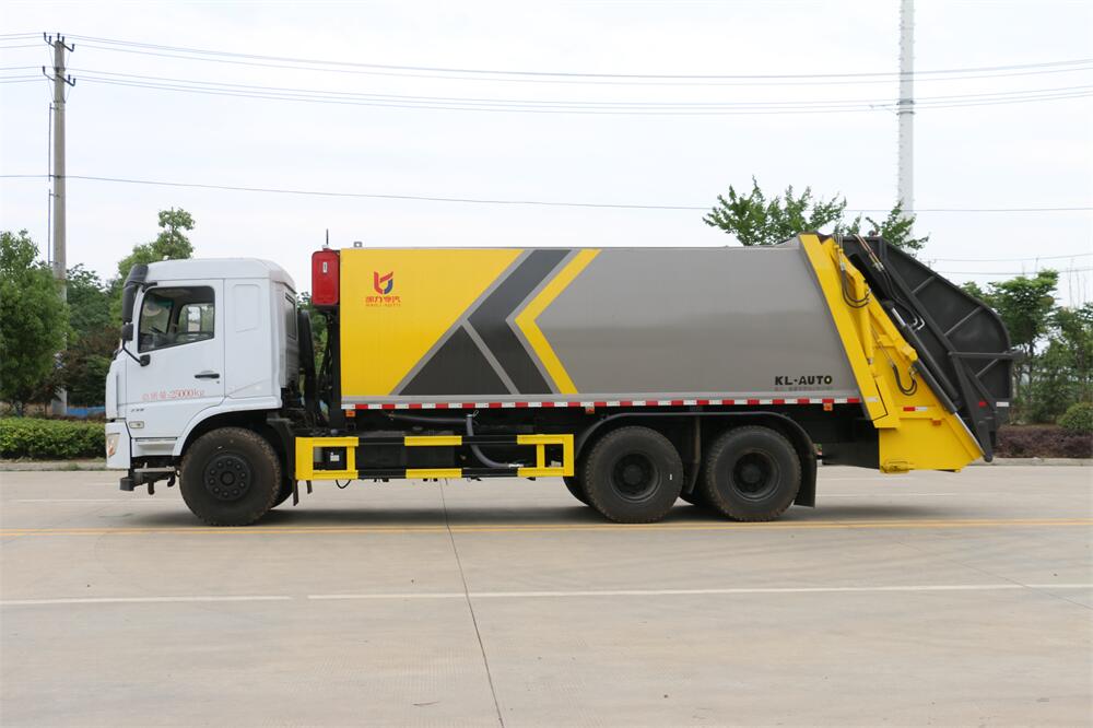 上裝配置:垃圾箱容積:18方,新款平面弧形廂體,廂體材料為武鋼優質碳鋼,PLC一鍵操作**,手電一體操作模式,兩側雙電控,帶駕駛室內操作,底板支撐加強,雙向壓縮,開放式易清潔污水箱。壓縮式垃圾車采用機電液一體化技術,借助機、電、液聯合自動**系統、電腦**、手動操作系統,通過填裝器和推鏟等專用裝置,實現垃圾倒入、壓碎或壓扁、強力裝填,把垃圾擠入車廂并壓實和推卸,污水全部進入污水廂,解決了垃圾運輸過程中的二次污染的問題。壓縮式垃圾車具有自動反復壓縮以及蠕動壓縮功能,壓縮比高、密封性好、裝載量大﹑操作方便、環保性好﹑整車利用功率高等優點。作業自動化,垃圾收集方式簡便、高效。后翻轉機構選裝:1、掛塑料桶式翻轉機構;2、掛鐵桶式翻轉機構;3、擺臂式翻轉機構; 4、簸箕斗式翻轉機構。