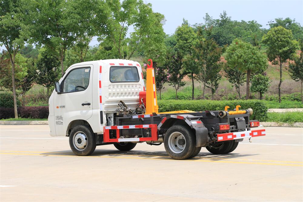 勾臂式垃圾車(車廂可卸式垃圾車)介紹: 車廂可卸式垃圾車又叫拉臂式垃圾車,是一種采用高新設計可伸縮的鉤臂,實現垃圾廂的二次吊裝,自吊上放下,可自行傾倒垃圾的環衛設備。 拉臂式垃圾車結構簡單,操作穩定方便,裝卸效率高,機械化程度高,節省人力。鉤臂垃圾車一車可帶多個垃圾廂,在裝卸的運輸過程中可有效地避免二次污染。 拉臂垃圾車采用高新設計可擺動的鉤臂,垃圾箱由框架、開啟油缸、滑輪、后門和若干加強框架與鋼板焊接而成。調換貨廂快捷方便,貨廂上帶蓋(倒垃圾時可翻開),鉤臂垃圾車垃圾廂體可選用碳鋼、不銹鋼材質、內部采取環氧樹脂防腐處理,改裝部分與原車底盤為可分離式,維修方便且保持了原車的機動性及行駛性能。