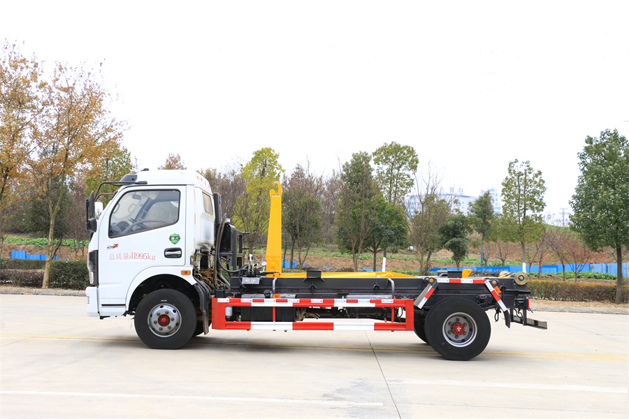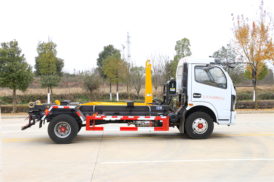 勾臂式垃圾車(車廂可卸式垃圾車)介紹: 車廂可卸式垃圾車又叫拉臂式垃圾車,是一種采用高新設計可伸縮的鉤臂,實現垃圾廂的二次吊裝,自吊上放下,可自行傾倒垃圾的環衛設備。 拉臂式垃圾車結構簡單,操作穩定方便,裝卸效率高,機械化程度高,節省人力。鉤臂垃圾車一車可帶多個垃圾廂,在裝卸的運輸過程中可有效地避免二次污染。 拉臂垃圾車采用高新設計可擺動的鉤臂,垃圾箱由框架、開啟油缸、滑輪、后門和若干加強框架與鋼板焊接而成。調換貨廂快捷方便,貨廂上帶蓋(倒垃圾時可翻開),鉤臂垃圾車垃圾廂體可選用碳鋼、不銹鋼材質、內部采取環氧樹脂防腐處理,改裝部分與原車底盤為可分離式,維修方便且保持了原車的機動性及行駛性能。