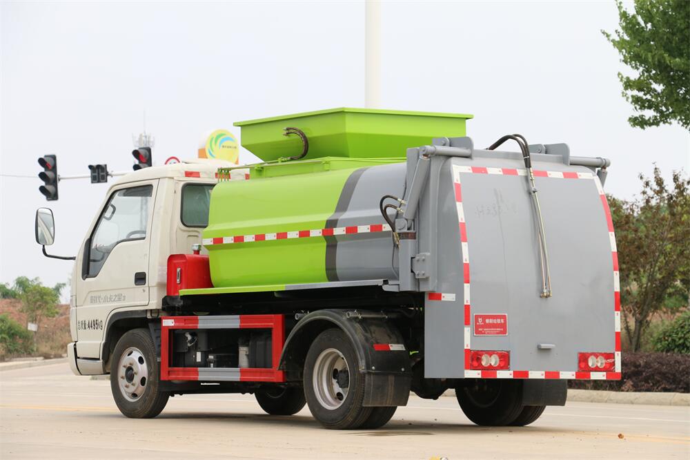 上裝配置:罐體容積4m3,配備120L/240L掛桶提升翻轉(zhuǎn)機構(gòu),液壓系統(tǒng),后蓋液壓鎖緊開啟,罐體可以舉升自卸,尾部帶自流閥;用于運輸液態(tài)垃圾,其特點操作簡單,密封性好,無泄漏,無異味;可選裝固液分離功能,推板擠壓功能,常用于餐館的垃圾轉(zhuǎn)運處理。