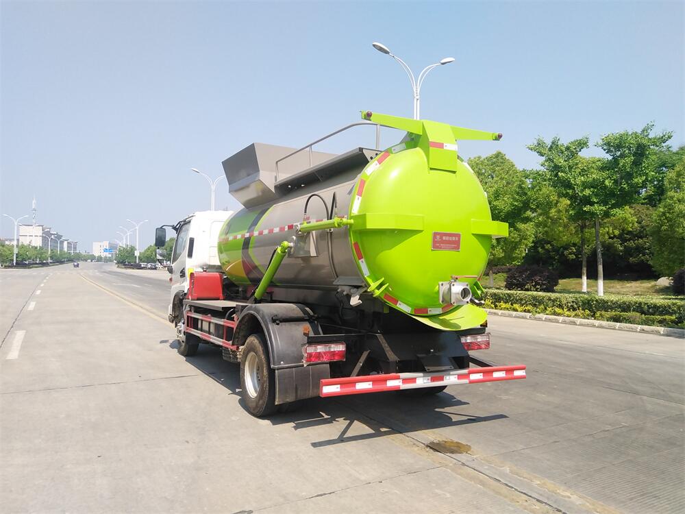 上裝配置:罐體容積8m3,配備120L/240L掛桶提升翻轉(zhuǎn)機構(gòu),液壓系統(tǒng),后蓋液壓鎖緊開啟,罐體可以舉升自卸,尾部帶自流閥;用于運輸液態(tài)垃圾,其特點操作簡單,密封性好,無泄漏,無異味;可選裝固液分離功能,推板擠壓功能,常用于餐館的垃圾轉(zhuǎn)運處理。