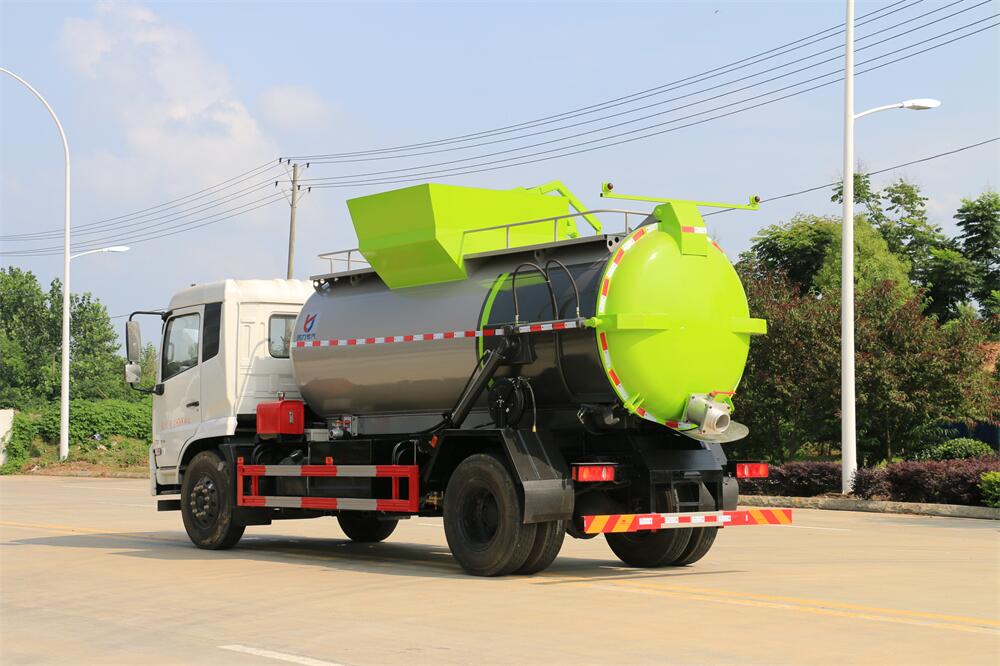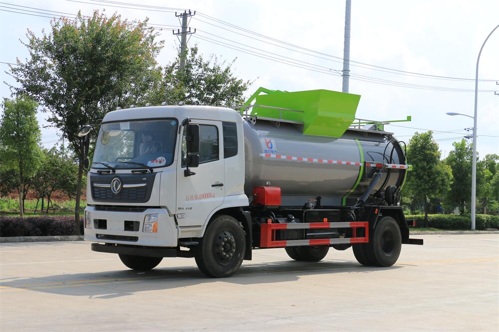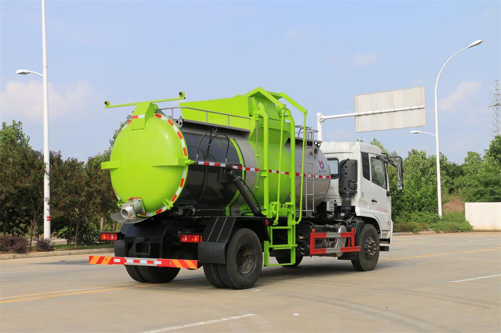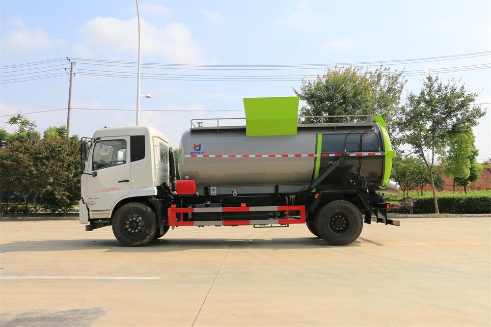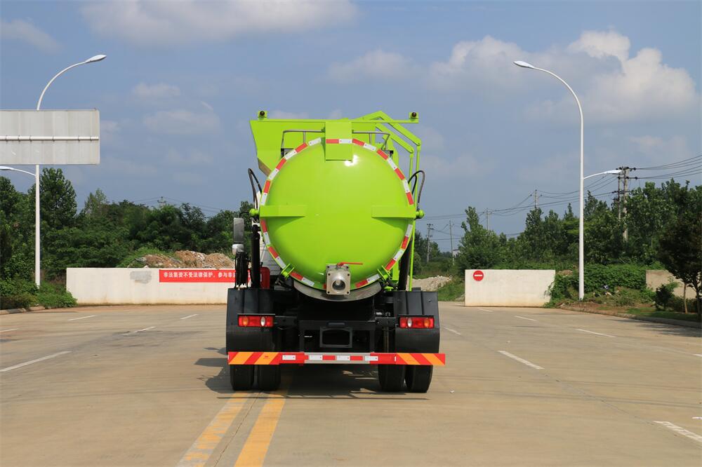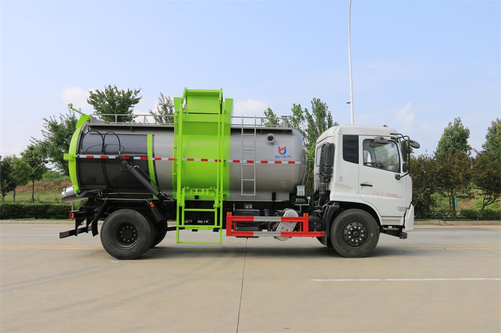 上裝配置:罐體容積12m3,配備120L/240L掛桶提升翻轉機構,液壓系統,后蓋液壓鎖緊開啟,罐體可以舉升自卸,尾部帶自流閥;用于運輸液態垃圾,其特點操作簡單,密封性好,無泄漏,無異味;可選裝固液分離功能,推板擠壓功能,常用于餐館的垃圾轉運處理。