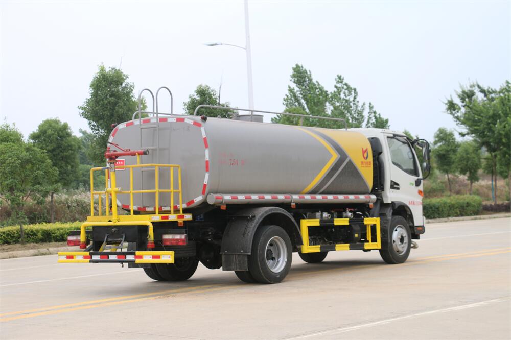 灑水車前裝有鴨形噴嘴或圓頭沖嘴,后面裝有圓柱開灑水噴嘴或蓮蓬頭噴嘴,后部有一工作平臺,裝配有水炮。后部還可裝8個噴嘴(選裝)。