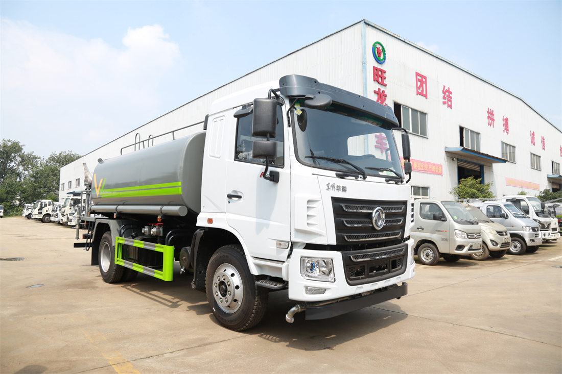 灑水車前裝有鴨形噴嘴或圓頭沖嘴,后面裝有圓柱開灑水噴嘴或蓮蓬頭噴嘴,后部有一工作平臺,裝配有水炮。后部還可裝8個噴嘴(選裝)。