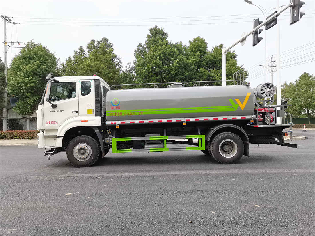 上裝配置:罐體容積 12-15立方,風送式霧炮機組30米,40米選擇,罐體采用國標Q235碳鋼材質,罐體厚度4MM,前后封頭5MM加厚型,罐體內雙層隔板具有防波蕩作用,以減輕汽車行駛時罐內液體沖擊;灑水車整車及外形尺寸嚴格按照**機動車公告制作而成;裝配大功率專用灑水泵,前沖、后灑、側噴、后平臺帶綠化灑水炮,灑水炮可全方位旋轉,可連續調成直沖狀、大雨、小雨、毛毛雨;配消防接口,自流閥,濾網,帶自吸自排功能。前封頭帶水位計,后平臺主管路帶1寸澆花接口,后爬梯,帶1個消防接頭,帶1個自流閥,1個過濾裝置,其余標配。