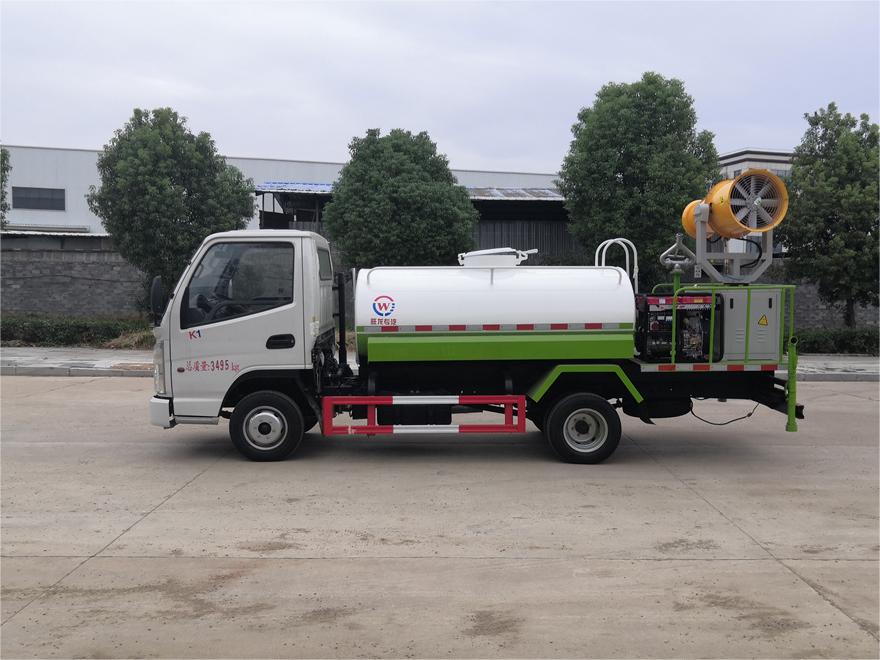 上裝配置:罐體容積 2立方,風送式霧炮機組30米,40米選擇,罐體采用國標Q235碳鋼材質,罐體厚度4MM,前后封頭5MM加厚型,罐體內雙層隔板具有防波蕩作用,以減輕汽車行駛時罐內液體沖擊;灑水車整車及外形尺寸嚴格按照**機動車公告制作而成;裝配大功率專用灑水泵,前沖、后灑、側噴、后平臺帶綠化灑水炮,灑水炮可全方位旋轉,可連續調成直沖狀、大雨、小雨、毛毛雨;配消防接口,自流閥,濾網,帶自吸自排功能。前封頭帶水位計,后平臺主管路帶1寸澆花接口,后爬梯,帶1個消防接頭,帶1個自流閥,1個過濾裝置,其余標配。