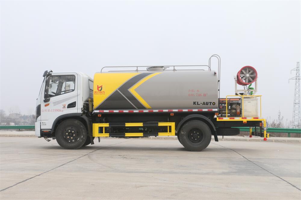 主要由發(fā)動機帶動變速箱,變速箱上安裝的取力器帶動灑水泵,灑水泵產(chǎn)生動力,將罐體內(nèi)部的液體通過管網(wǎng)噴灑出去。工作范圍:自吸高度:≥7m,灑水寬度:≥14m,**大射程:≥28m;可調(diào)節(jié)成柱狀,射程≥28m;也可調(diào)節(jié)成霧狀,射程≥5m。