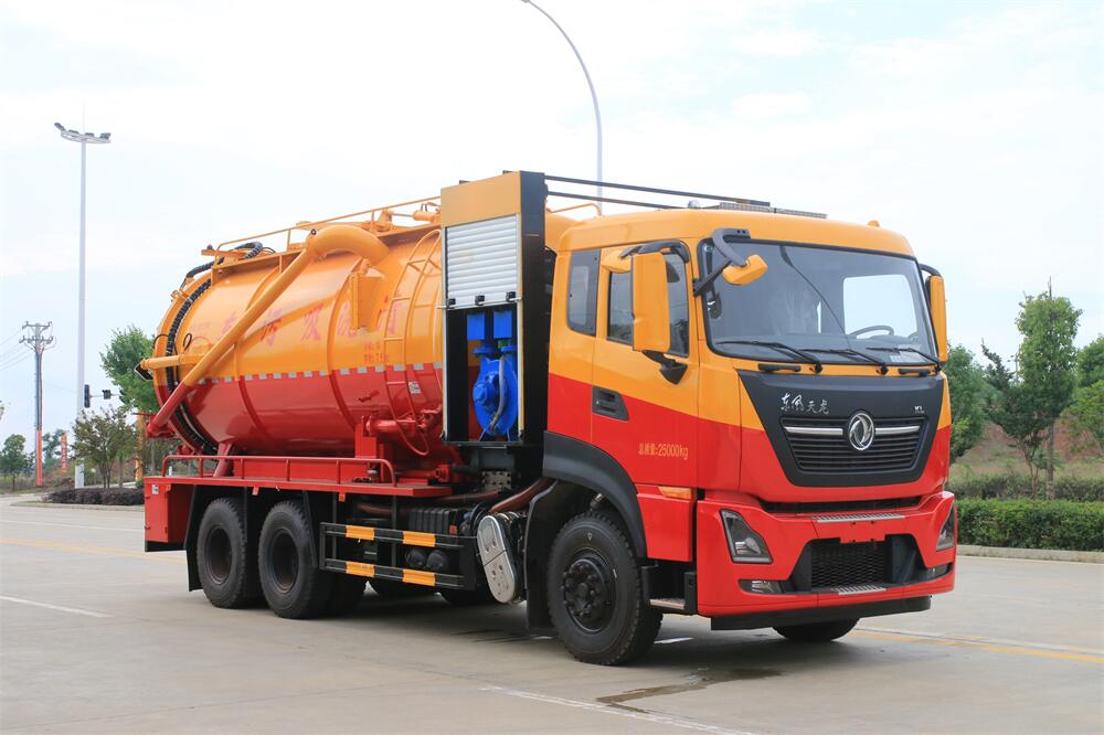 22方清洗吸污車-東風天龍22方清洗吸污兩用車-帶副發(fā)動機 圓罐