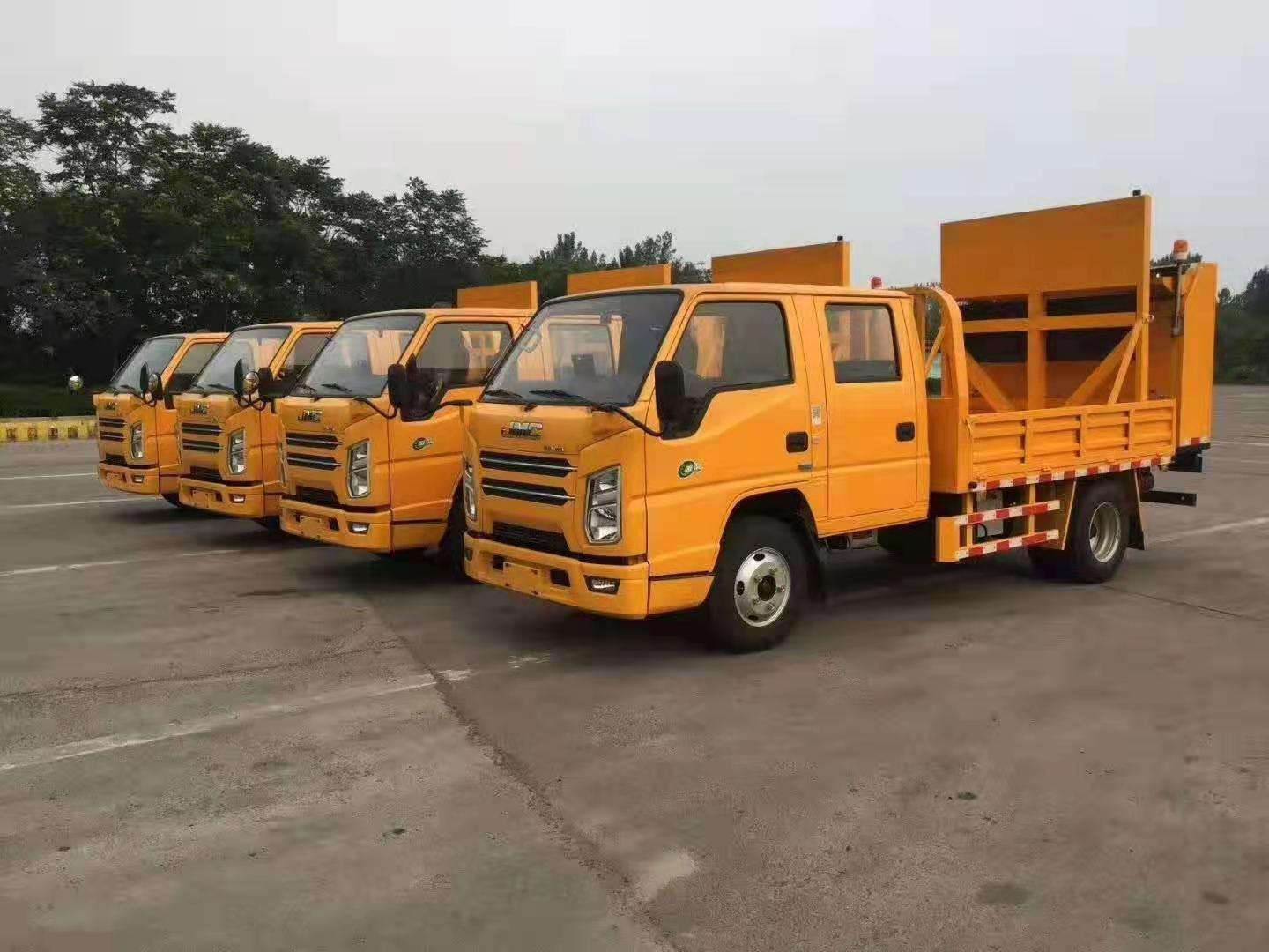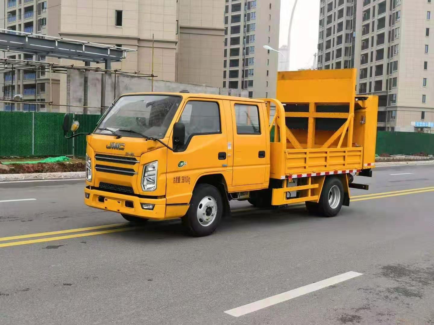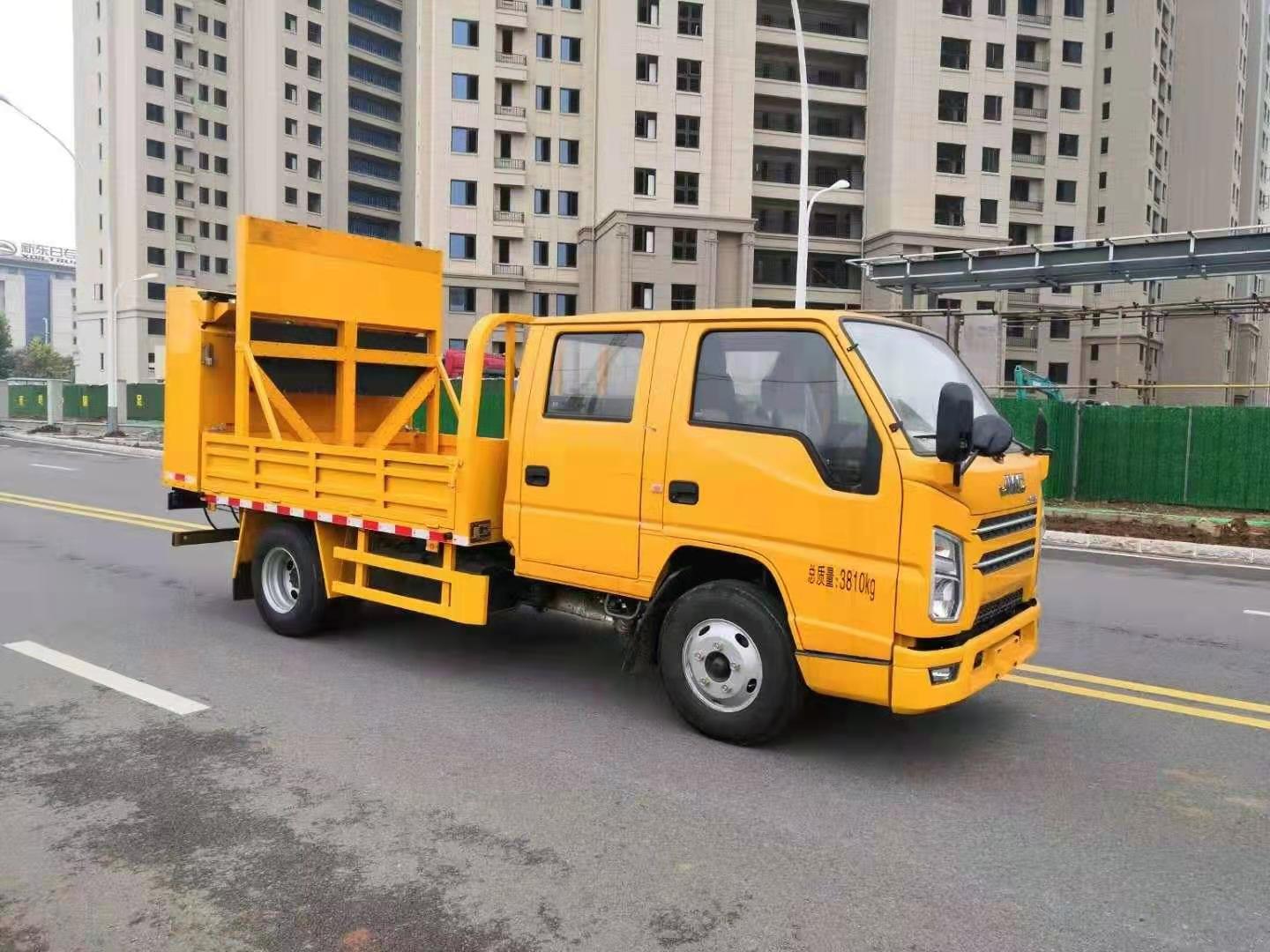 上裝配置:防撞緩沖車尾部設置防撞緩沖塊,防撞緩沖塊采用液壓升降裝置,還配備車載一體化的電子屏、電子箭頭標志牌、頻閃燈及爆閃燈多種**示燈,能夠為后方車輛提供**示和指示方向。箭頭指示標志可對左、右及禁止通行進行導向指示,對道路車輛提供主動安全引導和安全**示,**大限度降低施工對**流量的影響并確保安全。尾部升降和燈具采用遙控**,可在車輛附近安全**防撞緩沖塊的升降和**示燈的開關。
