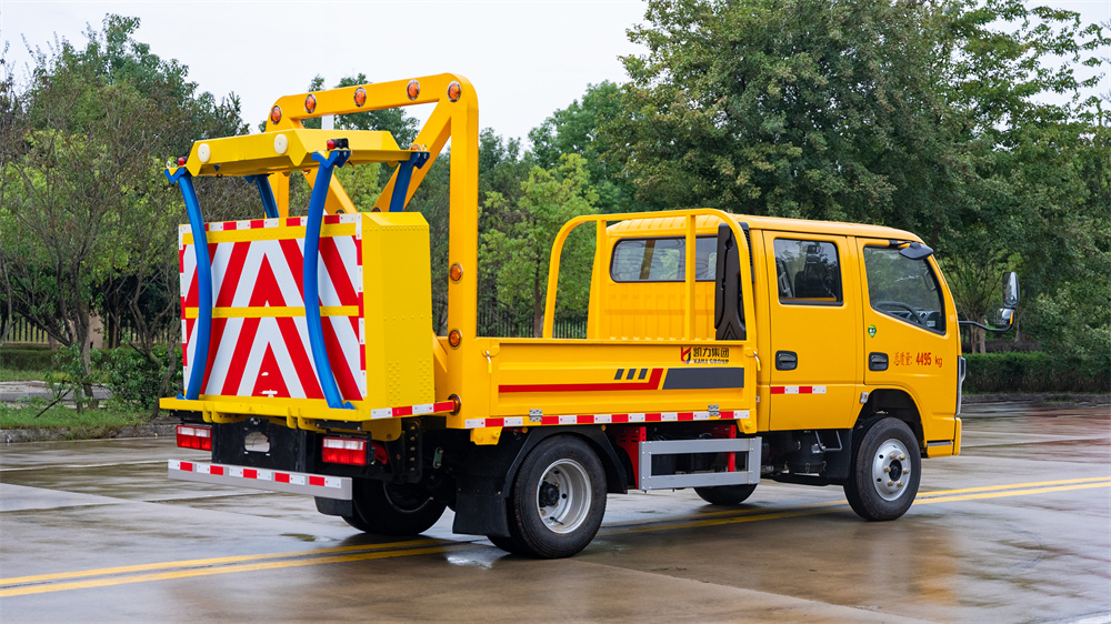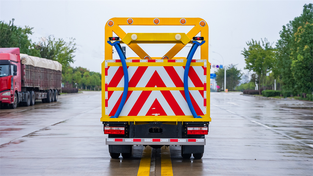 上裝配置:護箱:采用Q235國標邊3mm底板花紋板3mm厚,箱體后部防撞包采用國內知名公司,高性能液壓系統,可實現快速舉升和落下操作,方便設備運輸轉場,一鍵啟動功能,配有10個定制**示燈,LED**示顯示屏。