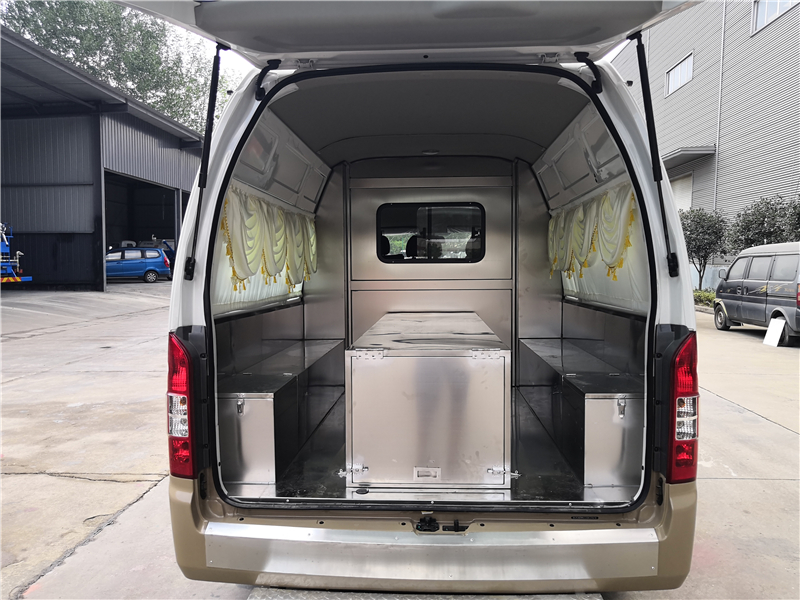 產品簡介 1. 主要配置:前空調,前暖風,電動車窗,ABS+EBD, 遙控鑰匙2. 改裝部分采用304L不銹鋼制作,中間不銹鋼隔墻安裝拉窗,不銹鋼地板,不銹鋼常溫棺不銹鋼擔架,加兩側玻璃下不銹鋼裝飾,根據您的要求設計改裝方案,模板一次成型,隔墻密封,拒串味??梢詮S家自提,也可以付定金貨到付款。(冰棺選裝,后空調選裝,可視系統選裝,對講系統選裝)